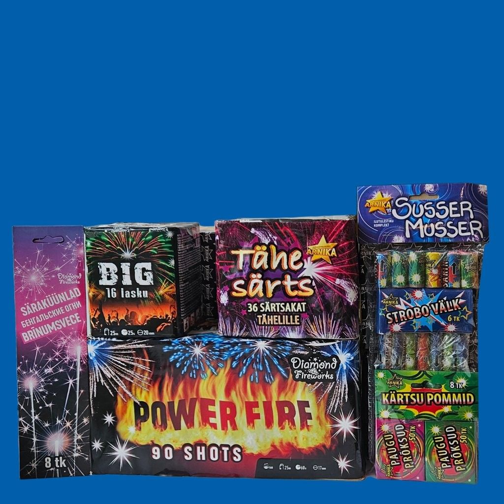 Lisaks tuleb komplektiga kaasa 16-lasuline ilutulestiku patarei BIG.