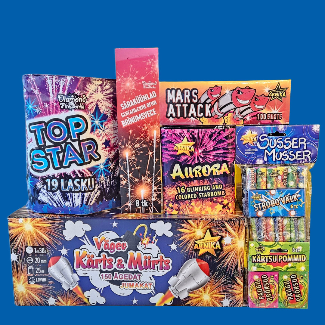 kuuest pakist just lastele mõeldud ilutulestikutootest, kokku 126 efektiga.