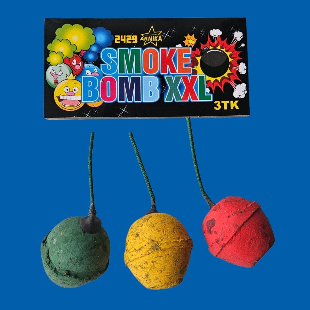 Smoke BOMB XXL. Komplektis 3 tk. Kestus 20 sekundit. Vahetavad värvi. Ainult väljas kasutamiseks. Alates 18 eluaastast.